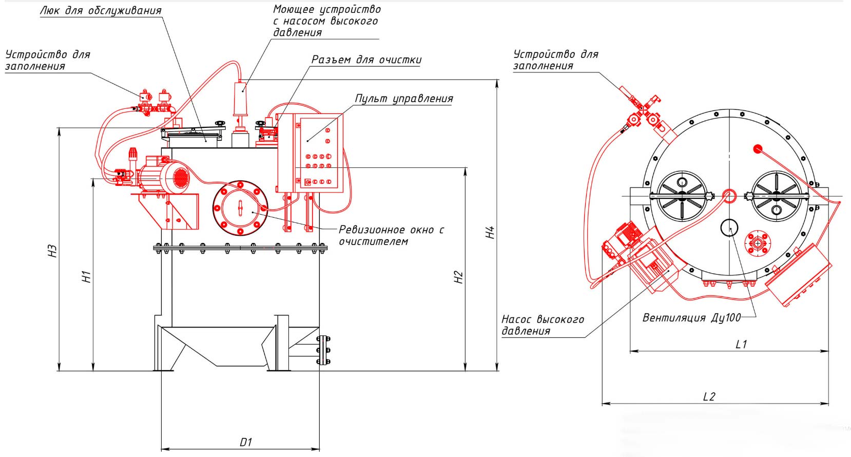 - Инспекционное окно с вращающимся очистителем;