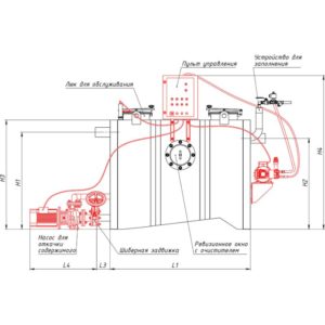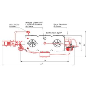 - Подключение к электросети 400 В/ 50 Гц/40 A/2,8 кВт. – для насоса откачки