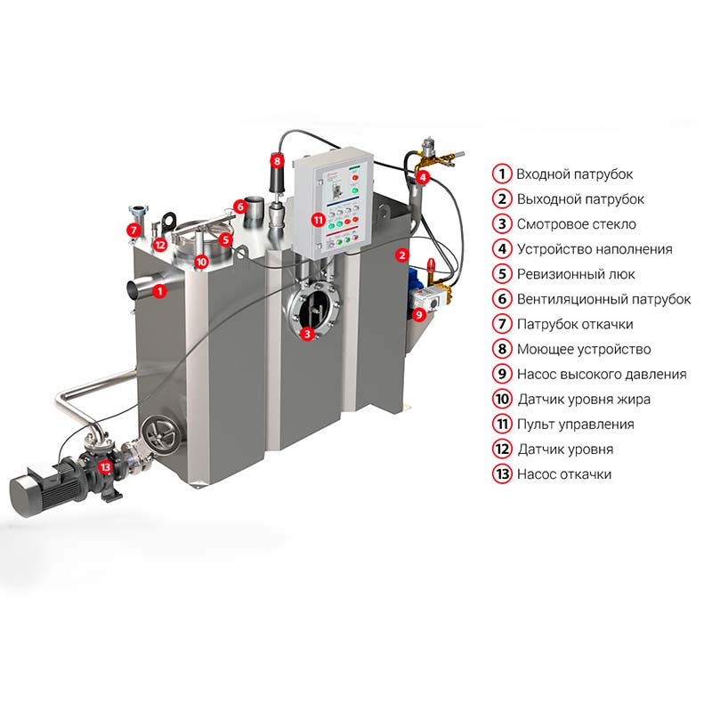 - Датчик уровня наполнения жироотделителя.