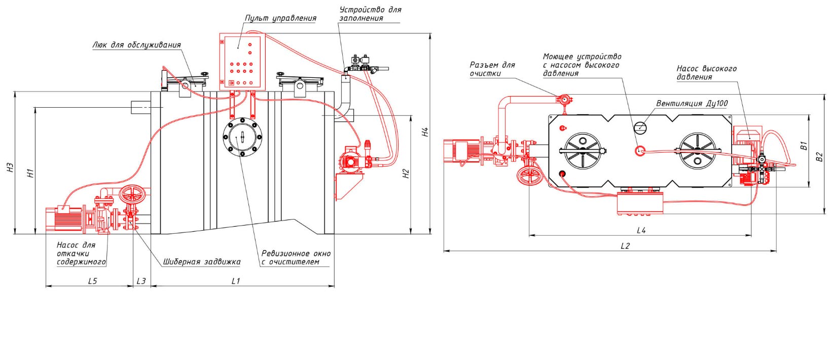 - Подключение к электросети 400 В/ 50 Гц/40 A/2,8 кВт. – для насоса откачки