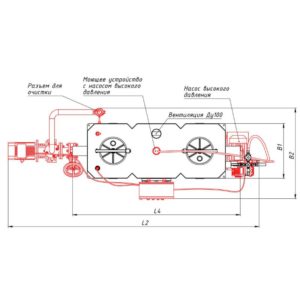 - Подключение к электросети 400 В/ 50 Гц/40 A/2,8 кВт. – для насоса откачки